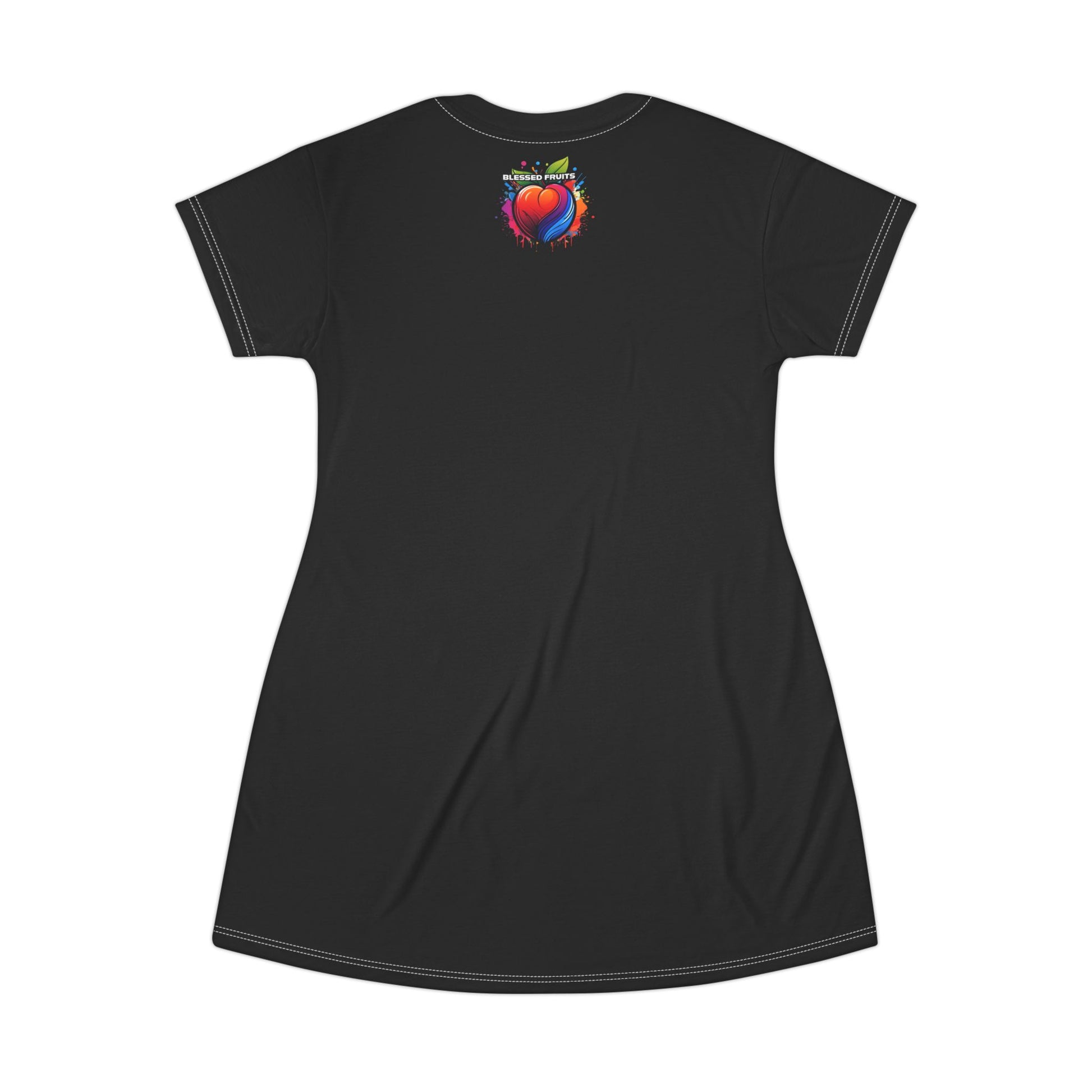 This T-Shirt Dress features a design of blessed fruits in beautiful colors, giving off a positive and vibrant vibe. Perfect for casual wear or as a beach cover-up, this dress is relevant for summer parties, picnics, and tropical vacations. Ideal for those who appreciate colorful and joyful patterns in their wardrobe.